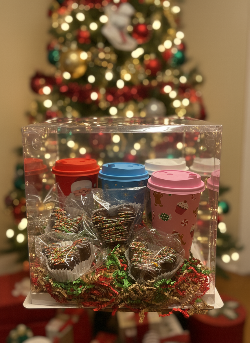 Indulge in the ultimate holiday delight with our exclusive hot chocolate gift set! Perfect for treating guests or clients, this beautifully curated box features everything you need to create rich, indulgent hot cocoa moments. Includes four decadent hot chocolate bombs, four festive holiday-themed cups, stylish cup sleeves, and optional milk for the perfect cup. Surprise your loved ones or elevate your holiday gatherings with this luxurious, comforting treat—an irresistible way to savor the season!