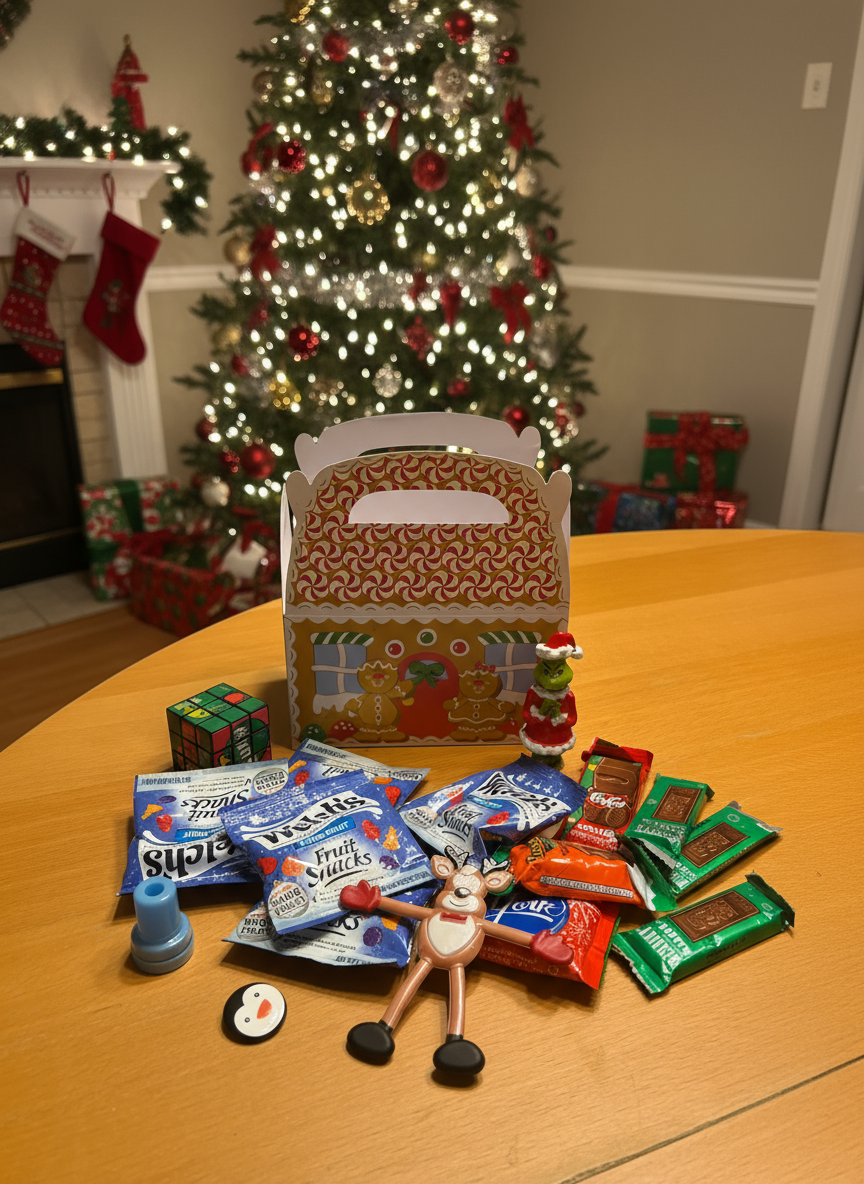 Delight your youngest guests with this irresistibly adorable treat box! Packed with a charming mix of treats and small toys, this holiday-themed box is the perfect way to enhance their vacation experience. Make their holidays unforgettable—choose this delightful treat box today!