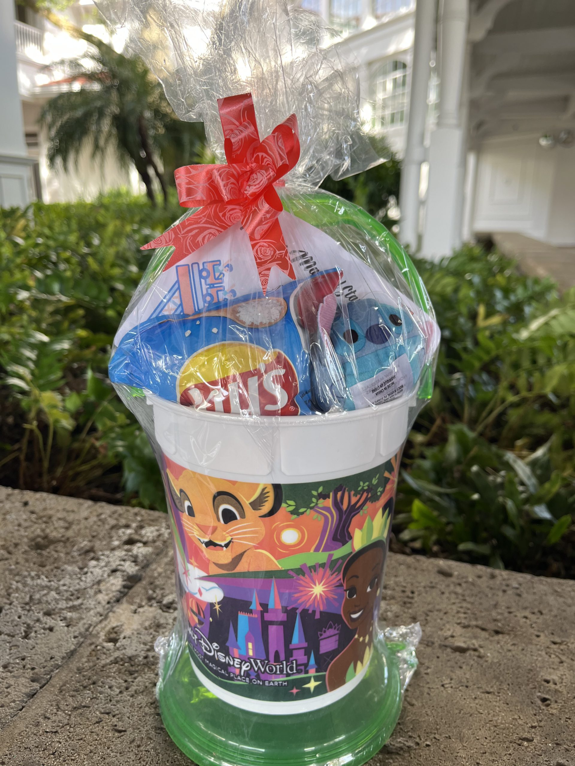 Start with your popcorn bucket, then customize it with snacks, drinks, and other fun items to fit your stay.